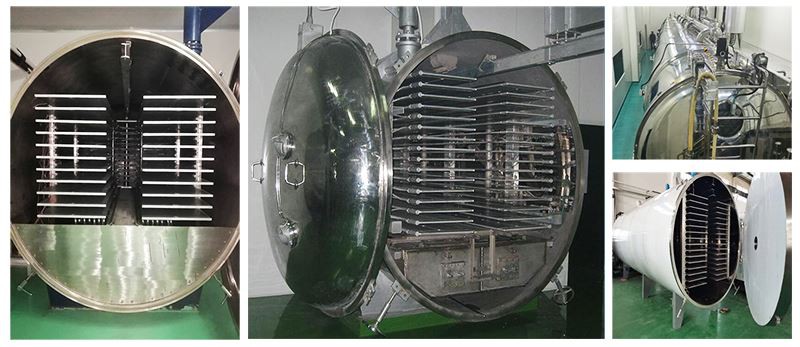 Vakuuma saldēšanas žāvēšanas mašīna ir vakuuma saldēšanas un žāvēšanas mašīna, kas apvieno saldēšanas sistēmu, vakuuma sistēmu, siltuma pārneses eļļas sildīšanas sistēmu un mitruma izvadīšanas sistēmu, lai izveidotu sausu struktūru, ko plaši izmanto materiāla žāvēšanai tvertnē. . Tā kā tas tiek žāvēts sasaldētā stāvoklī, tilpums ir gandrīz nemainīgs un tiek saglabāta sākotnējā forma. Žāvētais materiāls ir irdens un porains, un tam ir sūkļa forma. Pēc ūdens pievienošanas šķīšana ir ātra un pilnīga, un tiek atjaunota sākotnējā forma. Žāvēšana var izvadīt vairāk nekā 95-99 procentus ūdens, tāpēc žāvētos materiālus var uzglabāt ilgu laiku bez bojāšanās.